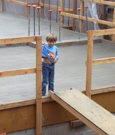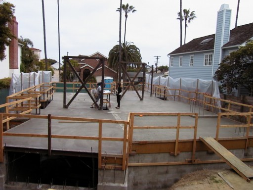 Waiting for concrete (yes, that's "our" pump on the street)...