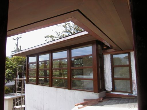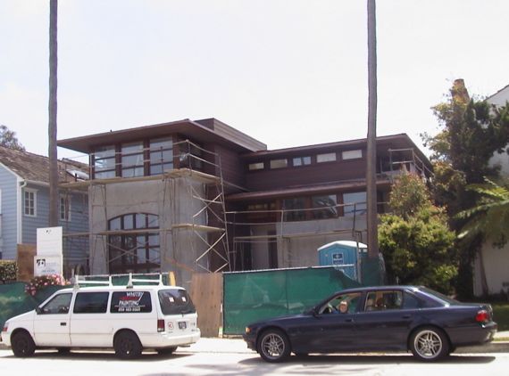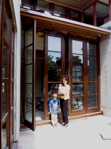 The (now thinner) Architect in the patio with Ari and Dane; doors to the living room...