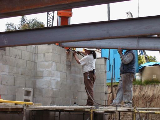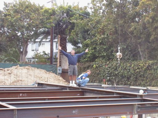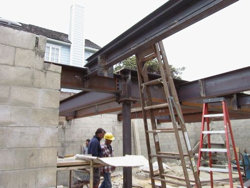 Welding a steel beam into a "beam pocket"...