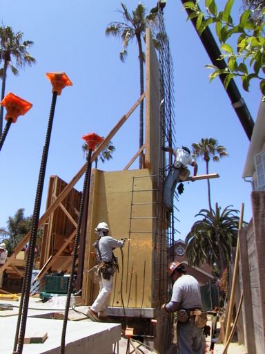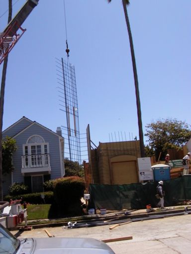 A 29-foot-tall section of steel coming in to be a "single curtain" of re-bar between the wall forms...